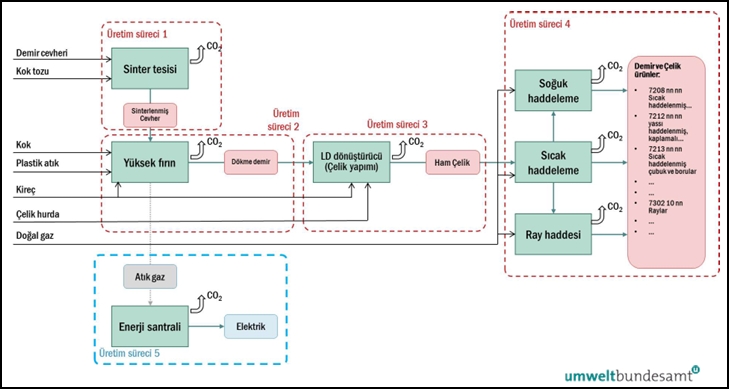 – Kok dahil tüm yakıtlardan, kok fırını gazı, yüksek fırın gazı veya dönüştürücü gazı gibi atık gazlardan kaynaklanan CO2; doğrudan veya dolaylı olarak üretim süreciyle ve baca gazı temizliğinde kullanılan malzemelerle bağlantılıdır.”