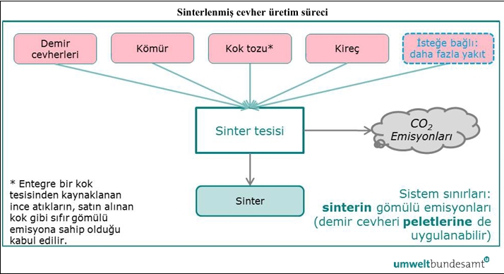 Yukarıdaki sistem sınırları tanımına uygun olarak, aşağıdaki üretim adımları demir cevheri peleti ve sinter üretiminin sistem sınırları dahilinde kabul edilebilir: