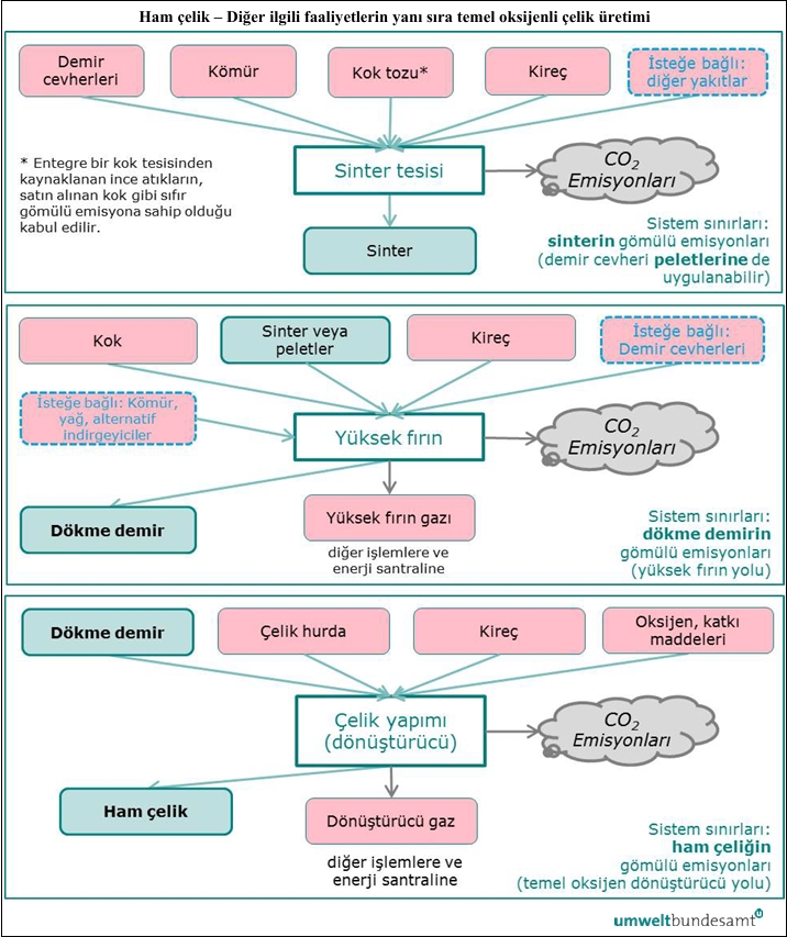 Yüksek fırından gelen sıvı pik demirin tamamı oksijenli çelik üretim süreci tarafından ham çelik üretmek için kullanılsaydı, yüksek fırın üretim rotasından kaynaklanan emisyonların ayrıca izlenmesine gerek kalmayacaktı. Bunun yerine ham çelik üretimine yönelik ortak bir üretim süreci tanımlanabilir.