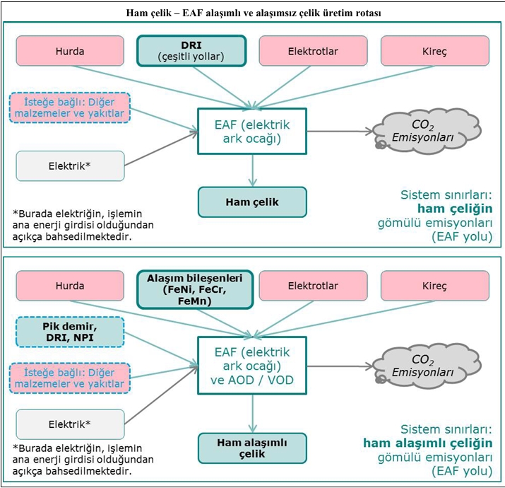 Üretim süreci 2’den elde edilen ve süreç 1’de dahili olarak geri dönüştürülen çelik hurdalarına hiçbir gömülü emisyon atfedilmemiştir.